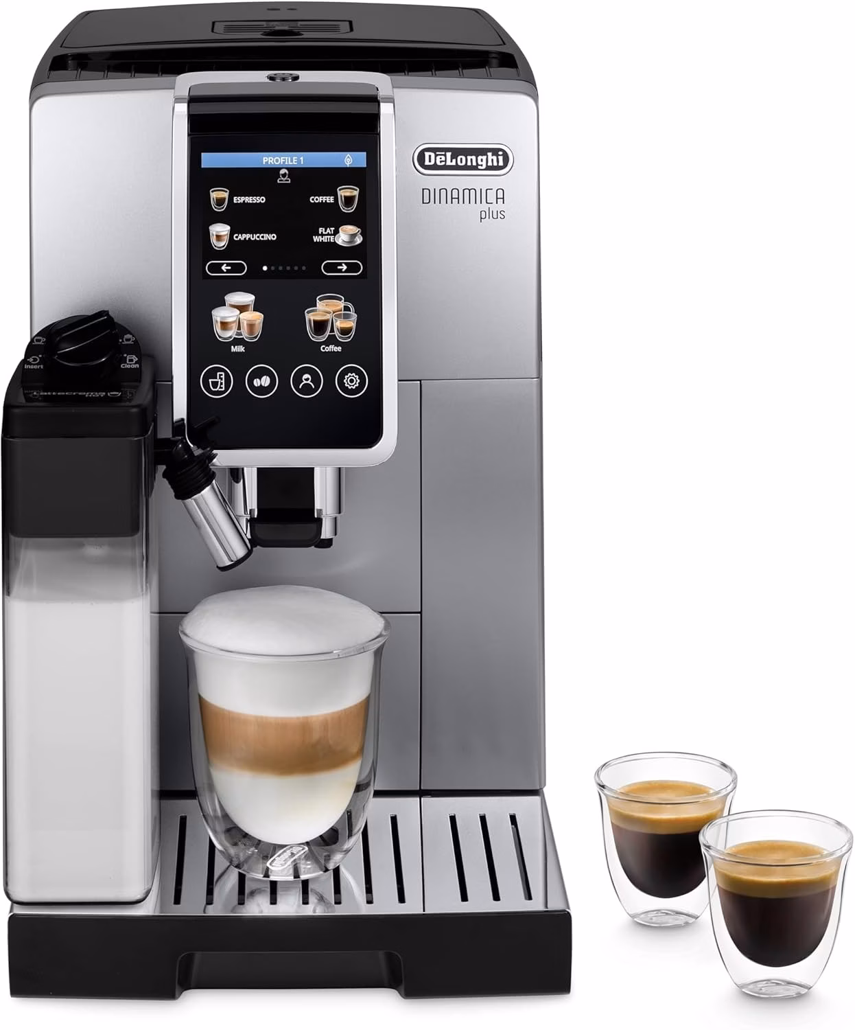 De Dinamica Plus is uitgerust met de exclusieve LatteCrema Hot-technologie, die automatisch perfect melkschuim bereidt. Je kunt kiezen uit verschillende schuimtexturen – van luchtig tot extra romig – zodat elke melkdrank precies naar wens is.