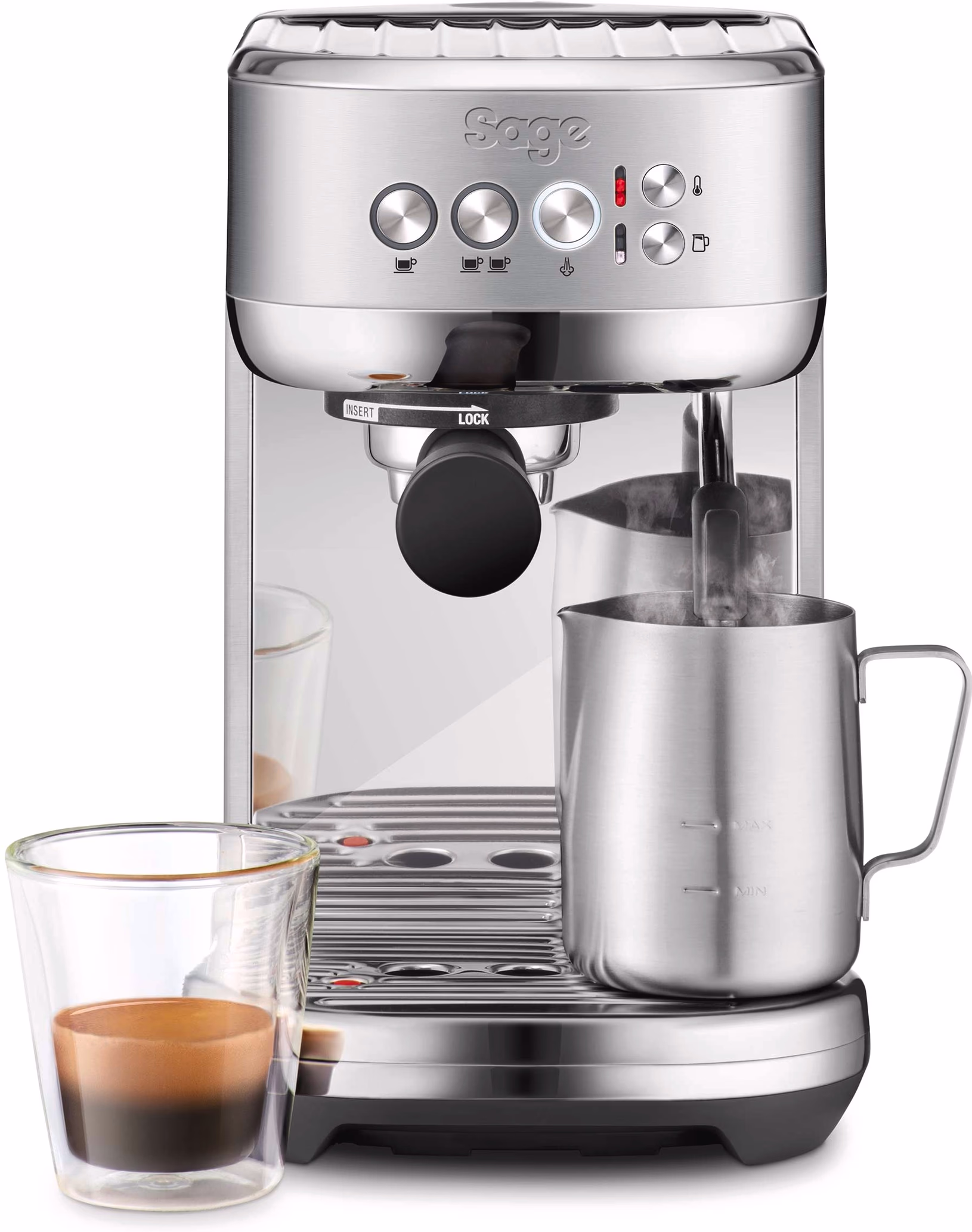 De Sage The Bambino is een kleine maar robuuste espressomachine die ideaal is voor iedereen die een authentieke espresso-ervaring wil zonder gedoe. Dankzij de snelle opwarmtijd, eenvoudige bediening en professionele functies geniet je thuis van rijke en volle espresso’s — net als bij een echte barista.